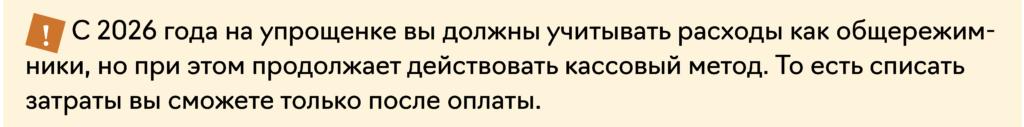 На упрощенке расходы признаются после их фактической оплаты (п. 2 ст. 346.17 НК). Если компания или ИП на УСН оплатили расходы авансом в 2025 году, то списать их в 2026 году нельзя, если этих расходов не было в закрытом перечне в 2025 году (п. 1 ст. 346.16 НК). Если же компания оплатила расходы в 2026 году, их можно учесть на дату оплаты, если выполнили прочие условия (п. 2 ст. 346.16 и п. 2 ст. 346.17 НК). Например, расходы по проведению спецоценки в 2025 году, оплаченные в 2026 году, учитываются в 2026 году.