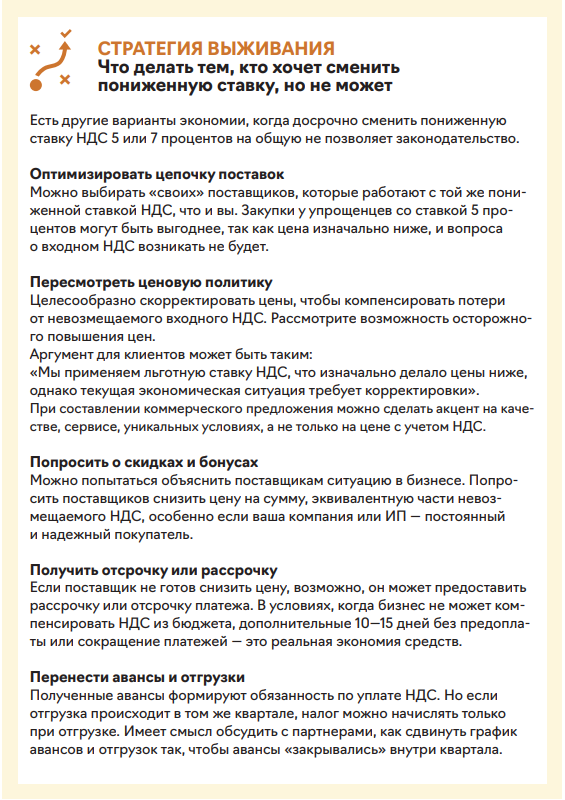 Важно! Право на смену пониженной ставки есть только у упрощенцев-новичков в НДС с 2026 года. Если начали платить НДС на упрощенке в 2025 году, придется применять пониженную ставку еще в 2026 и 2027 годах. Исключение — только если утратите право на упрощенку из-за превышения лимита доходов или других ограничений. Тогда уже вынужденно перейдете на общую ставку.